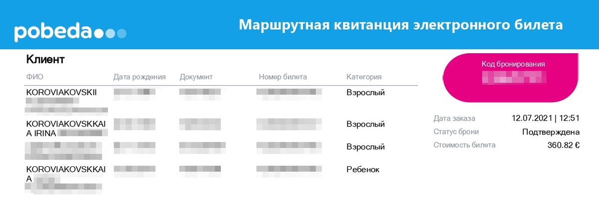 На обратный путь, когда в Краснодар из Петербурга летели уже четверо человек, мы взяли билеты у лоукостера «Победа». Они были недорогие — 30 717 Р за четверых, но невозвратные.